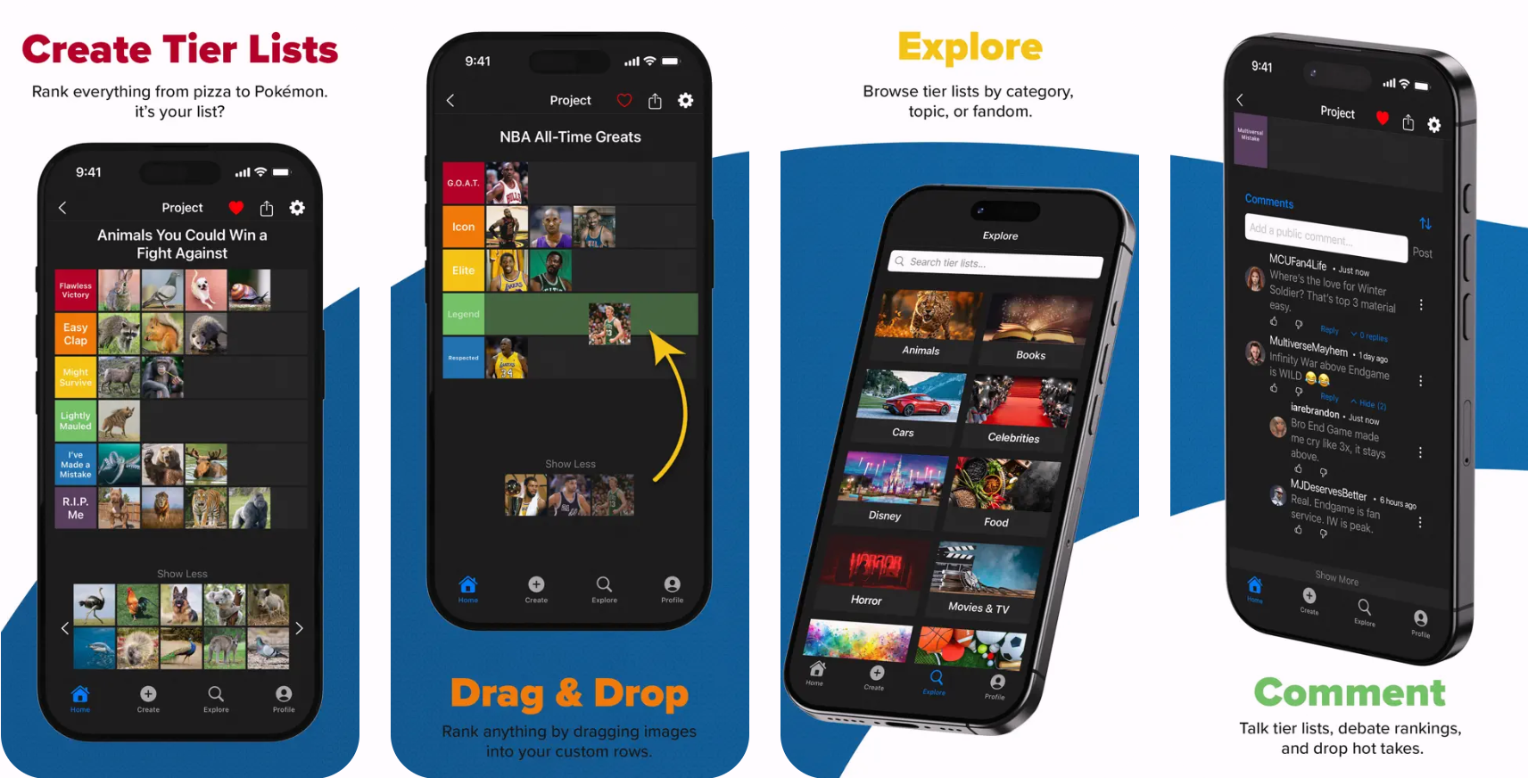 Top Tier List是一款iOS应用,提供简单的方式创建和分享分层列表,支持评论互动、多种图像格式和高级自定义。
