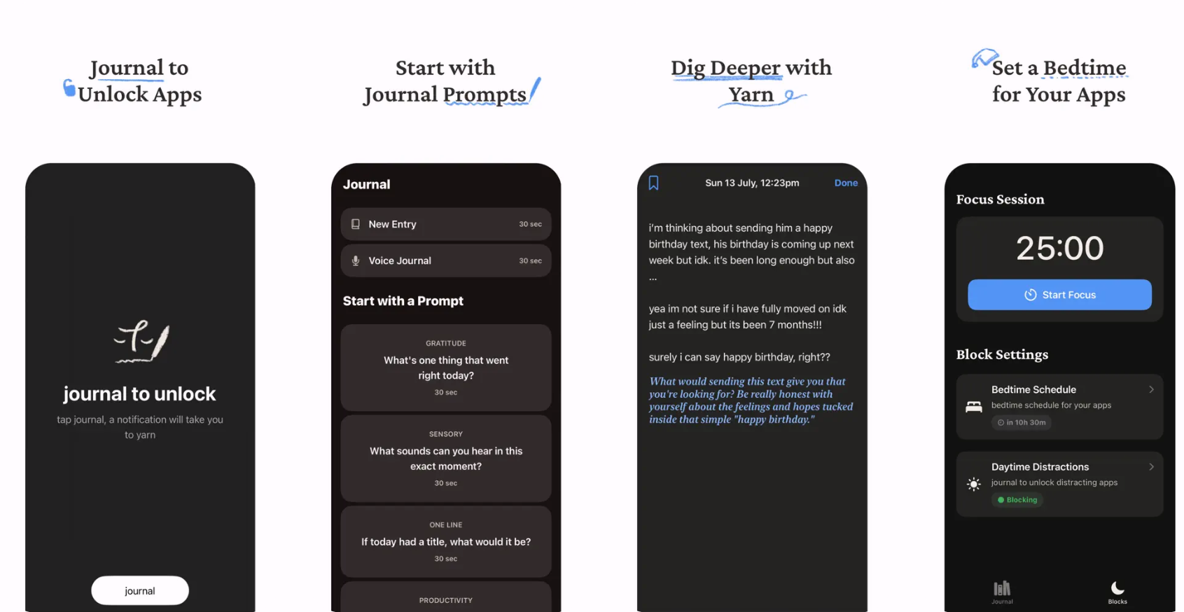 Yarn AI是一款iOS应用,通过AI治疗师帮助用户进行日记记录,旨在减少屏幕使用时间。