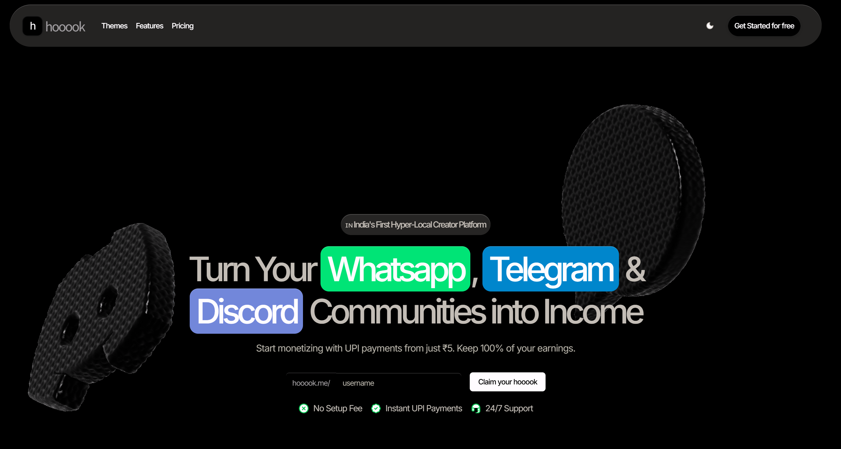 hooook是一款帮助印度创作者收取会员费用的工具,支持UPI支付,简化了WhatsApp、Tg和Discord社群的管理流程。