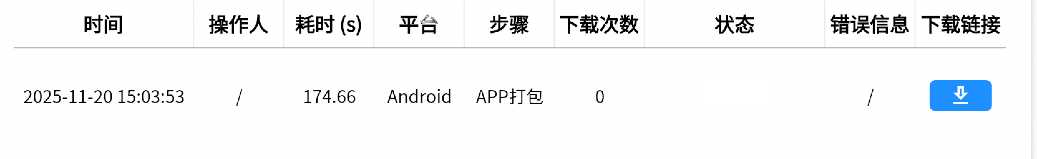 待打包完成后点击下载按钮,安装应用并进行测试。