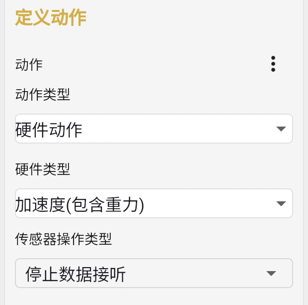3.鼠标选中动作,右侧出现动作配置并配置如下内容