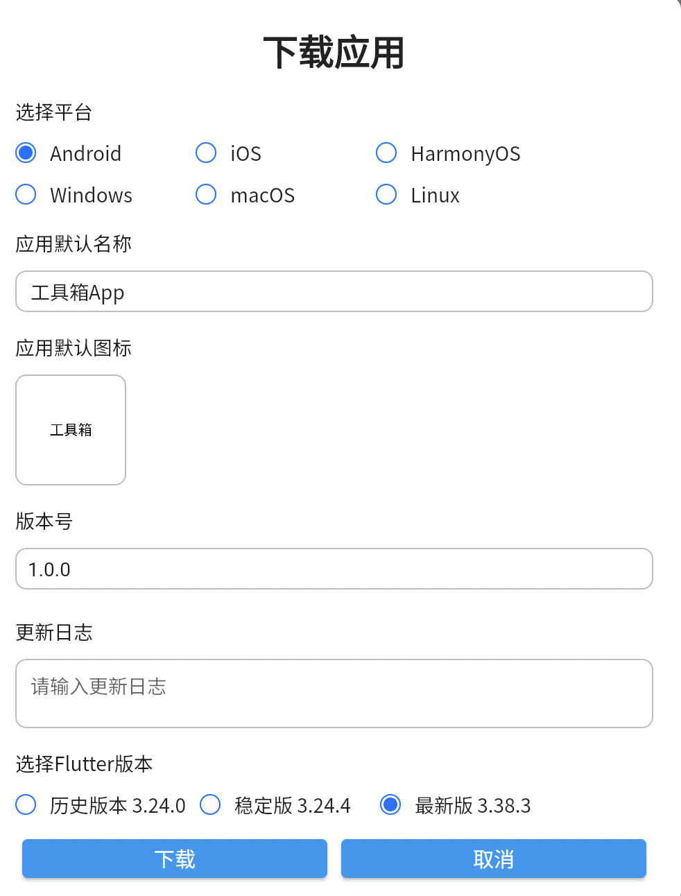 3.接下来进行 App 打包:点击右上角 下载 → 下载应用