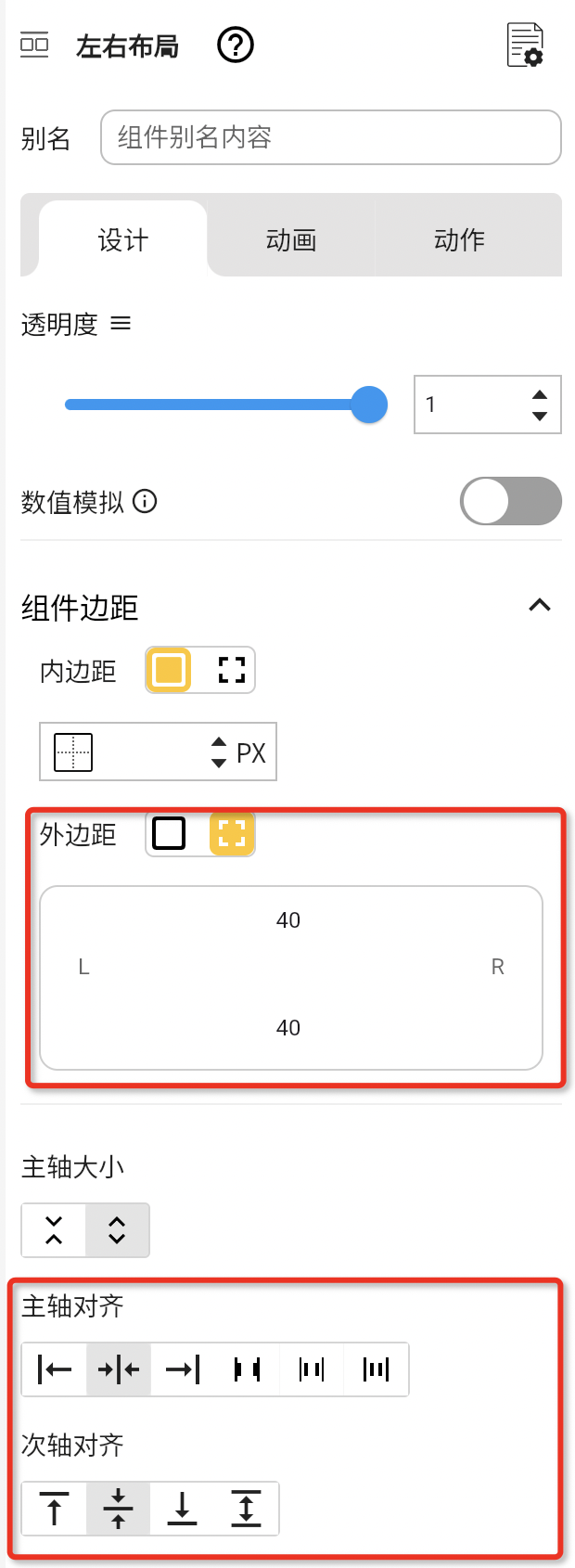 6.拖动文本到左右布局中,然后在右侧的属性编辑器中配置属性,属性信息如下: