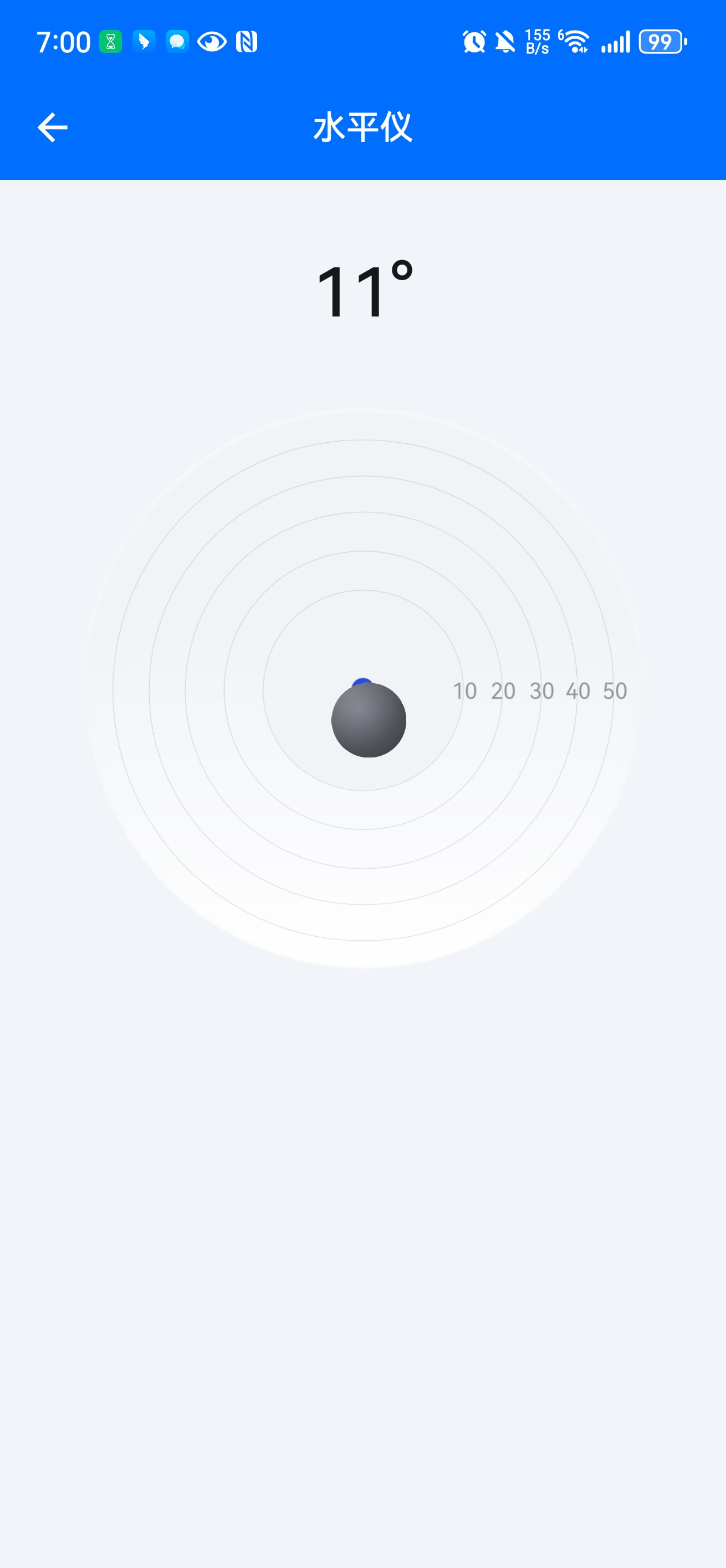 继续往下是水平仪主体,由一个小球图片和一张背景图片组合而成。其中,小球图片会根据手机移动而移动,从而实现水平仪效果