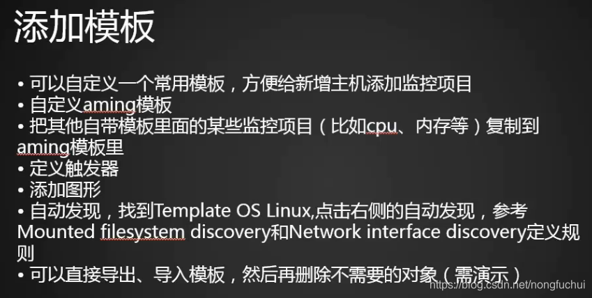 当增加特有格式特有组的时候,针对于这个组我们单独的添加一些个性化的监控项目,而这些项目可以增加一个模板,每增加一些机器就可添加在这个模板里