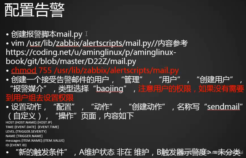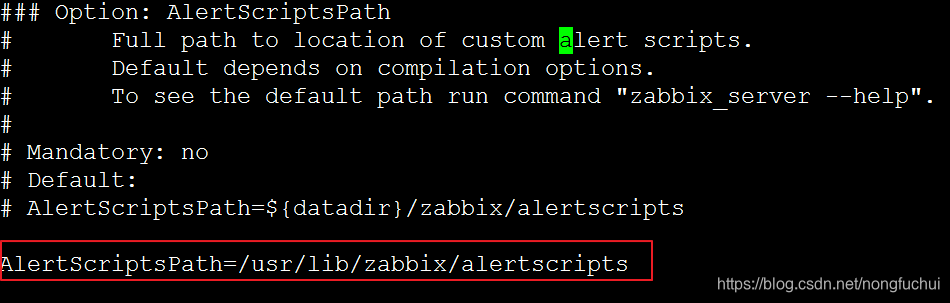 我们根据下图zabbix_server.conf 配置文件来看,能看到alert所在的路径,所以我们之前所定义的脚本mail.py一定要放在这个路径下面