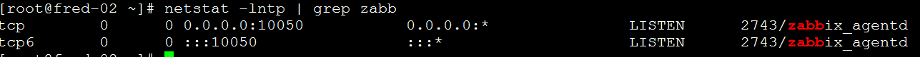 会看到其监听的端口是10050,而zabbix server监听的是10051