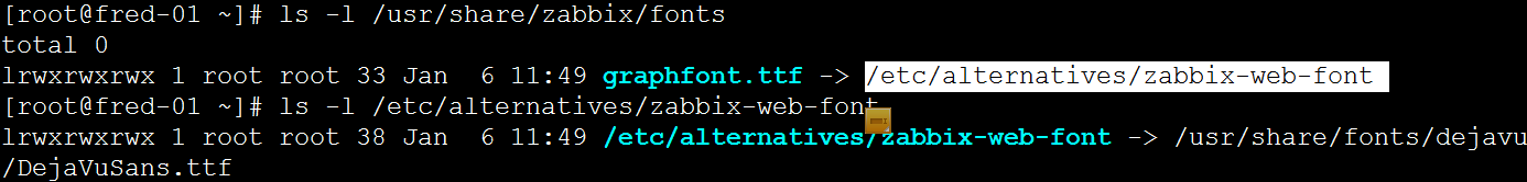 通过配置文件可以看出他是有路径font定义的,而此font只是一个相对路径,绝对路径为/usr/share/zabbix/fonts