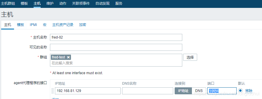 &再添加主机之前你要先添加一个主机群组,首先创建一个fred-test的群组