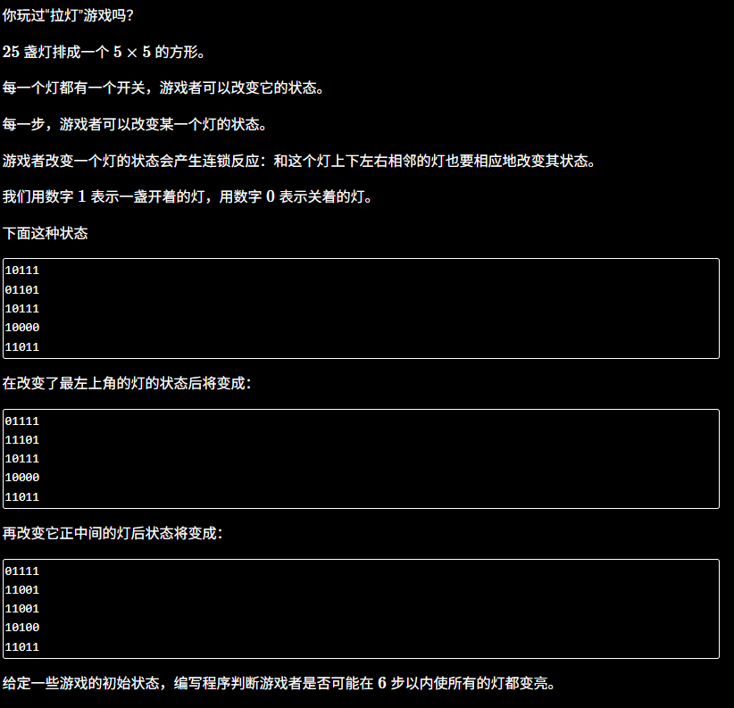 5×5的灯阵,每个灯有开(1)或关(0)两种状态