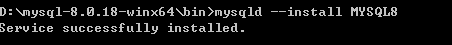 - 输入mysqld --install MYSQL8开始安装mysql8,安装成功提示: