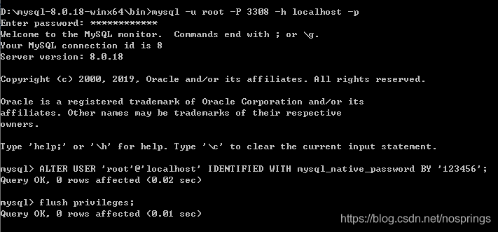 | ALTER USER 'root'@'localhost' IDENTIFIED WITH mysql_native_password BY '123456'; |