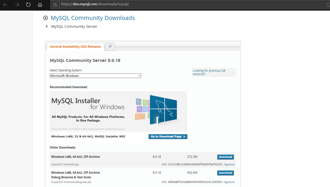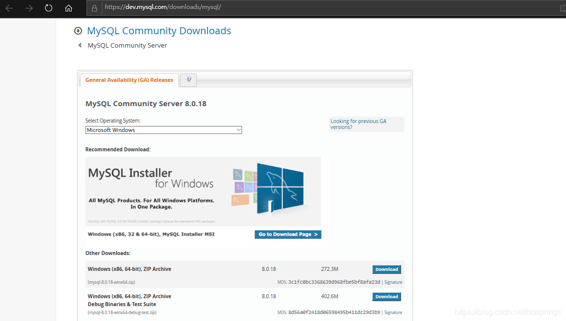 打开官方下载网址:https://dev.mysql.com/downloads/mysql/