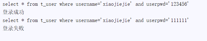 # sql = "select * from t_user where username='%s' and userpwd='%s'" % (userName, userPwd)