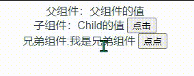 由于子组件 的值是父组件传递过去的 , 所以 这个兄弟组件 操作了父组件的值,那么子组件也跟着变化 代码如下