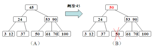 删除:查询到节点,然后进行删除操作,不满足B数节点的定义则进行节点合并。
