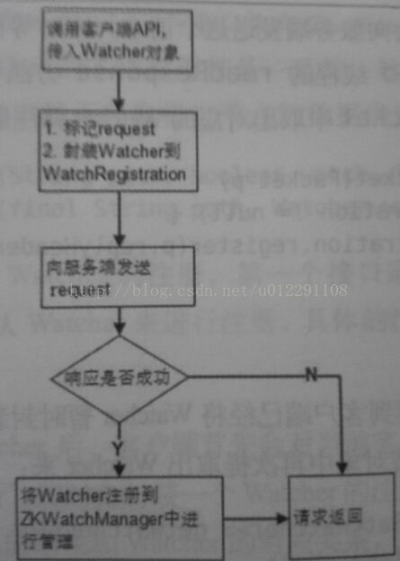 在这恋歌接口上都可以进行Watch的注册,第一个接口通过一个boolean参数来标识是否使用上文提到的默认Watcher来进行注册,具体的注册逻辑和第二个接口是一致的。