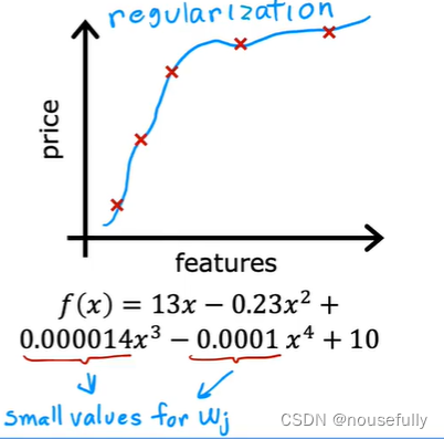我们可以从之前的事例中看出,正是那些高次项导致了过拟合的产生,所以如果我们能让这些高次项的系数接近于0的话,我们就能很好的拟合了。
