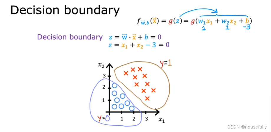 也就是z>=0,g(z)>0.5,f(x)>0.5,y=1.