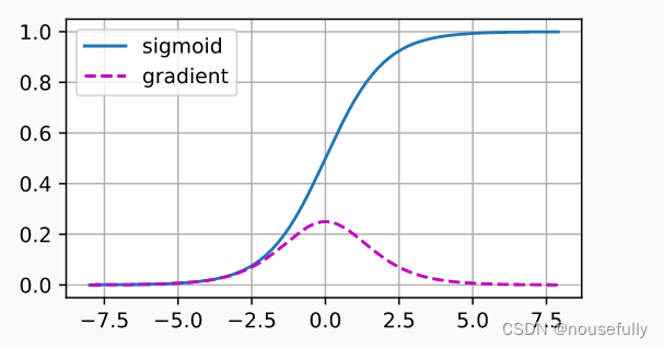 正如你所看到的,当sigmoid函数的输入很大或是很小时,它的梯度都会消失。