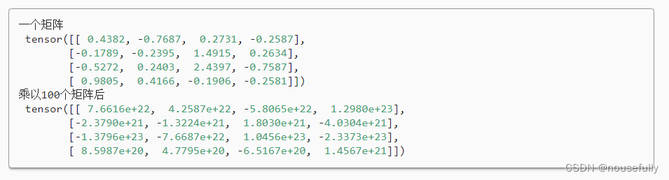 相反,梯度爆炸可能同样令人烦恼。 为了更好地说明这一点,我们生成100个高斯随机矩阵,并将它们与某个初始矩阵相乘。 对于我们选择的尺度(方差σ2=1),矩阵乘积发生爆炸。 当这种情况是由于深度网络的初始化所导致时,我们没有机会让梯度下降优化器收敛。