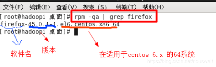 一个rpm包名:firefox-45.0.1-1.e16.centos.x86_64.rpm