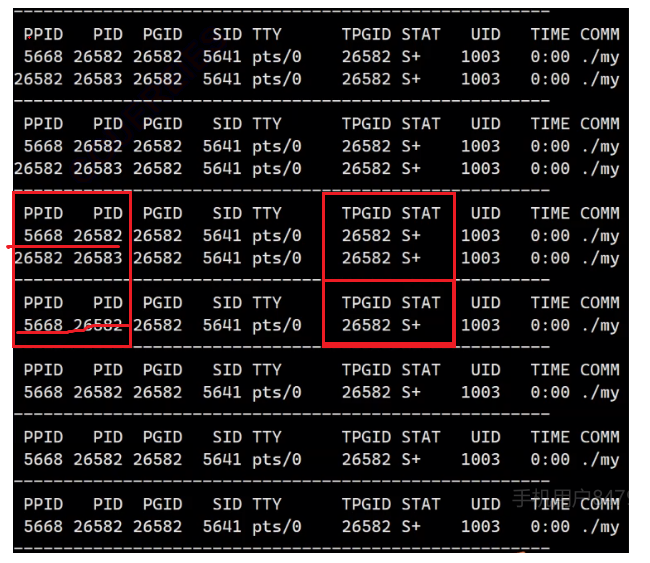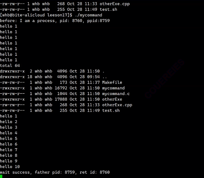 我们发现5s后子进程变为僵尸进程,当再过5s父进程结束wait等待回收子进程pid,子进程成功释放。
