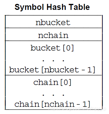 符号表所有项的大小相同,都为16个字节,所以.dynsym section和.symtab section也被叫做符号表,并且每个表项都有一个索引值,而符号表的第一个表项必须是索引值STN_UNDEF(即0)的无效项。索引值STN_UNDEF在符号的散列算法中可以被当做链尾,即表示它不引用有效的符号。