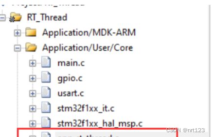 Application/USER文件夹下新建app_rt_thread.c文件,并添加以下代码