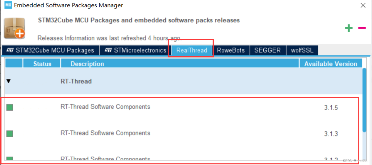 (2)选择 RealThread, 然后根3.1.5版本的,然后点击 OK 按钮