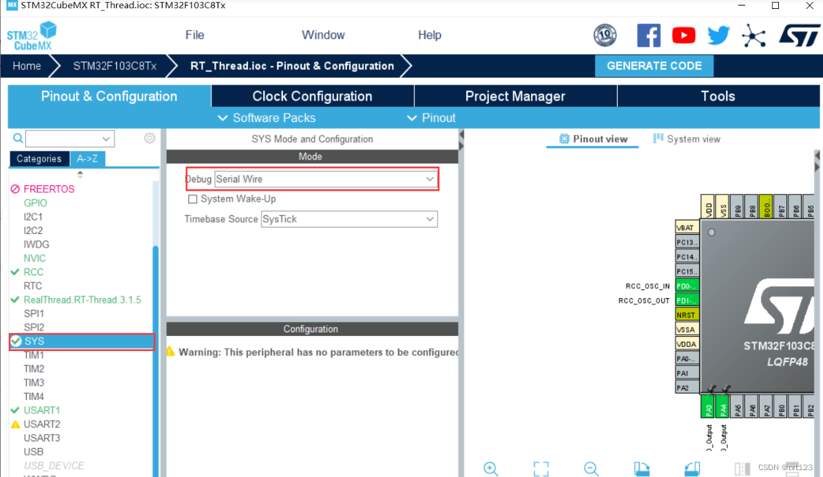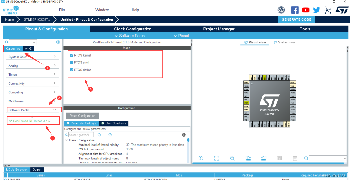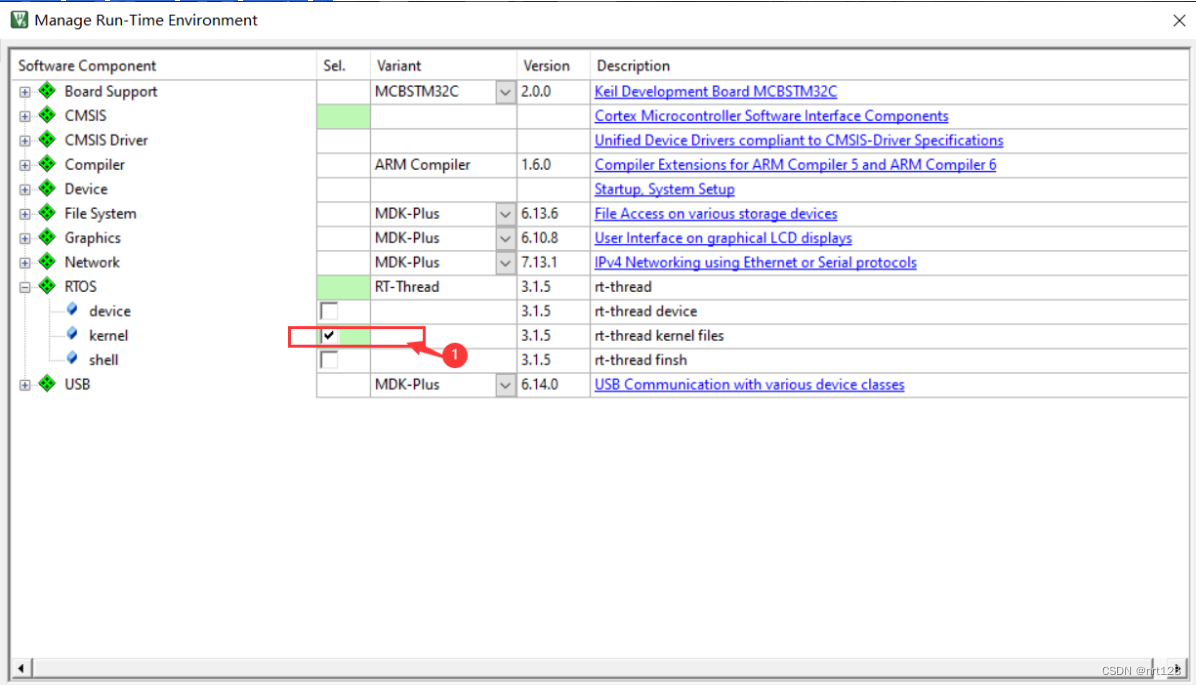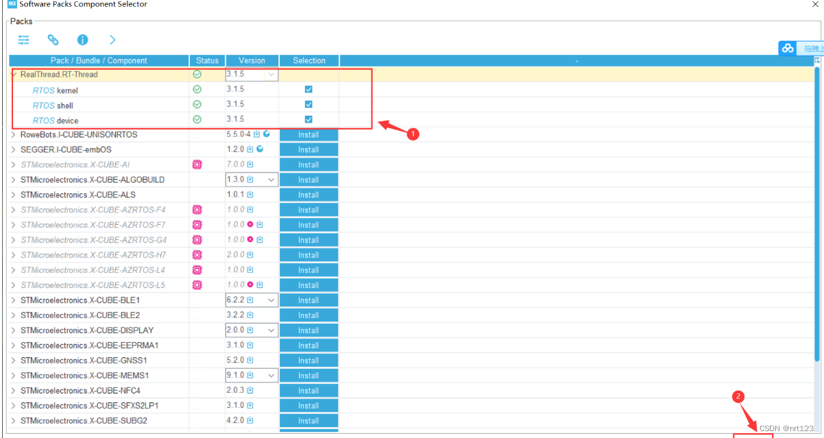 (3)这时会新增Software Packs展开就可以看见添加的RealThread.RT_Thread,勾选相应内容
