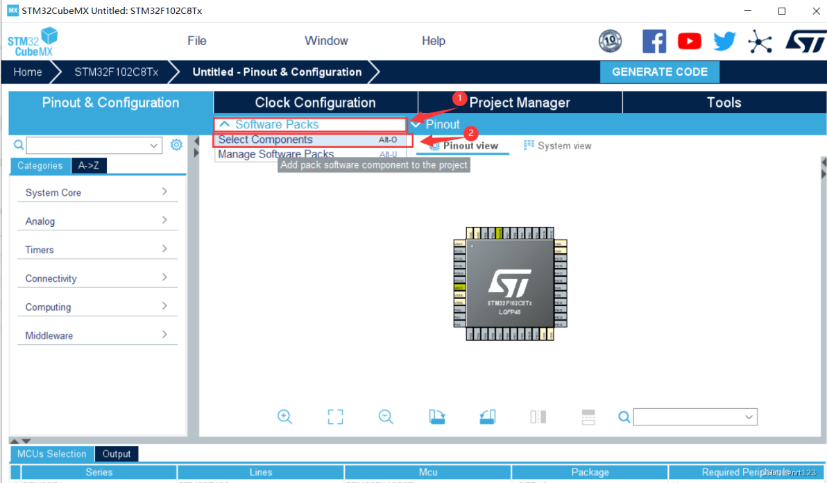 要获取 RT-Thread Nano 软件包,需要在 CubeMX 中添加