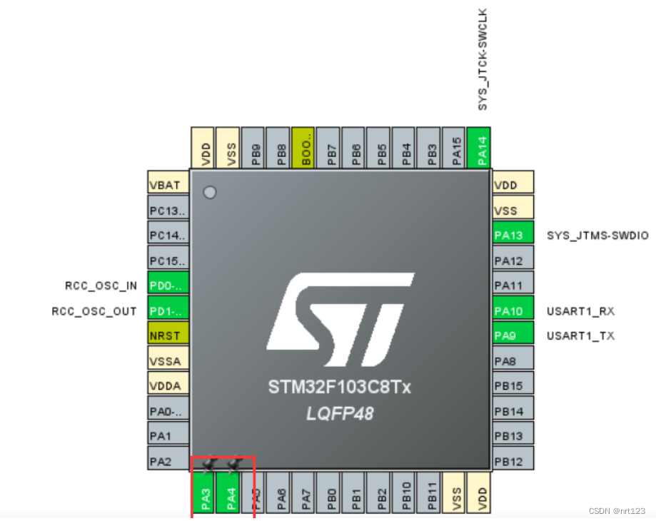 7.GPIO选择A3,A4串口,用来点亮LED灯
