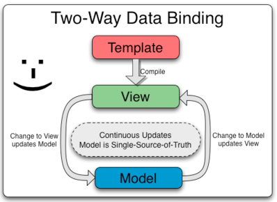 AngularJS强大的双向绑定解决了一次性单向绑定的问题,Angular会对定制的标记或指令进行编译,生成动态的视图,任何对视图的变动会及时反映到与之绑定的模型,反之模型状态的更新也会映射到视图上。这一切都是基于模型的状态, 极大的简化了编程。你可以把视图当成模型的即时展现。