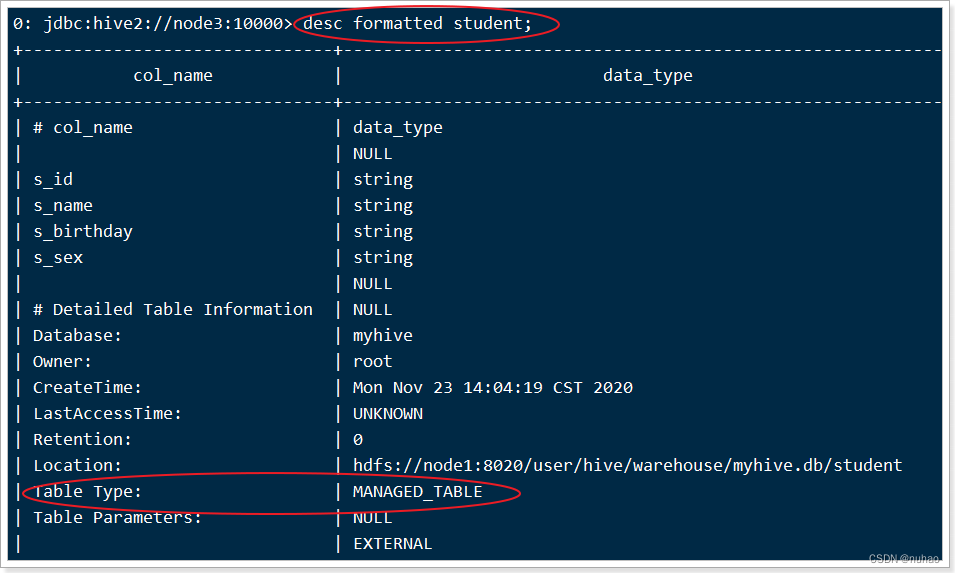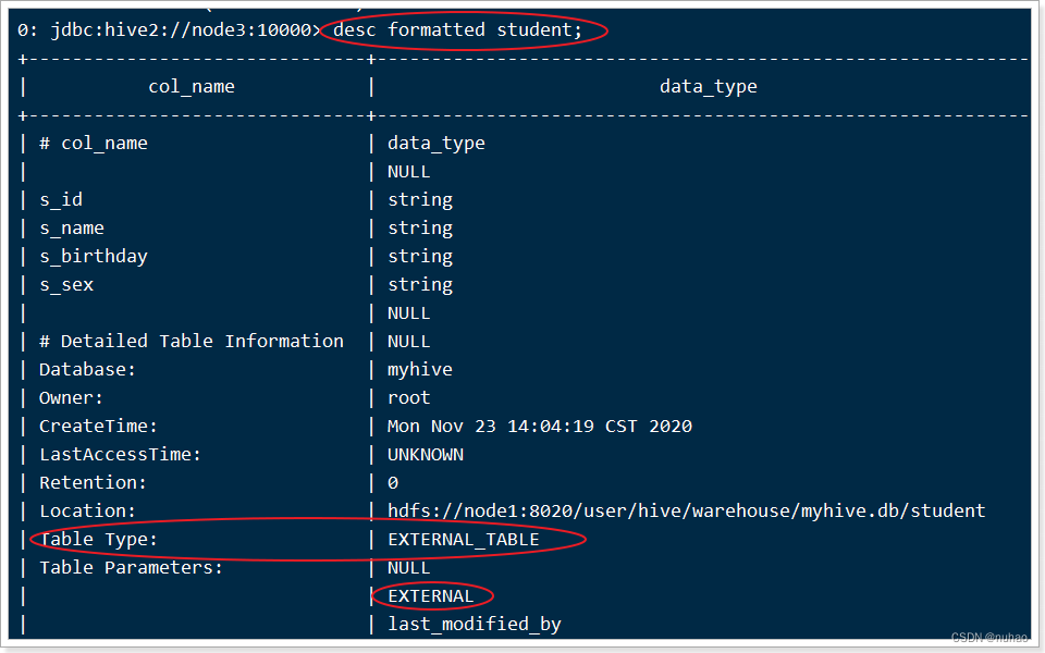 desc formatted student; Table Type: EXTERNAL_TABLE |