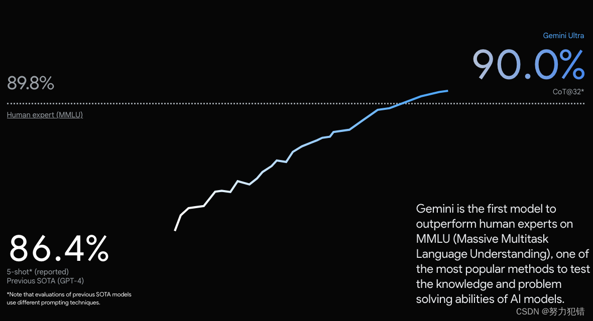 谷歌发布全新AI模型Gemini,超越GPT-4在MMLU测评中首超人类,展示在复杂任务和多模态理解的强大能力,预示AI应用新时代的到来。