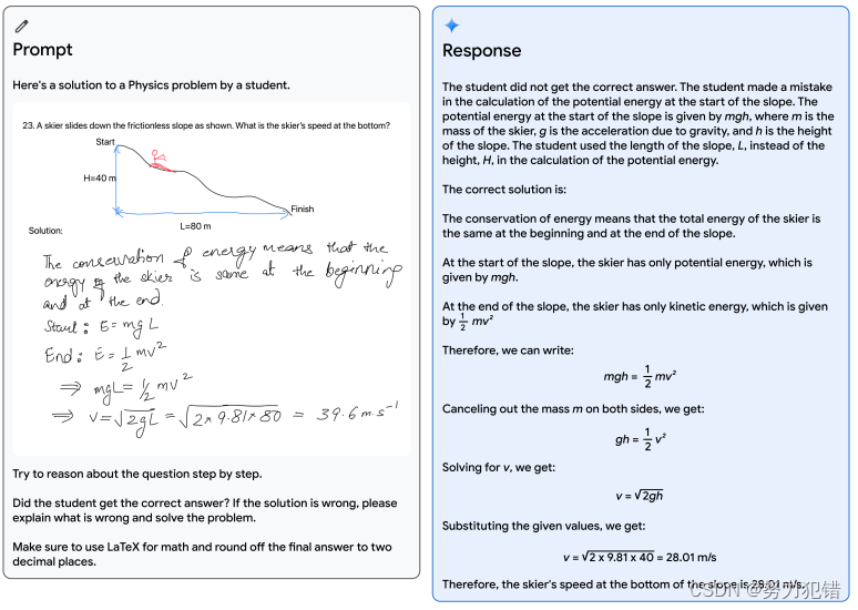 借助Gemini的多模态推理技能,该模型可以理解难以捉摸的手写文字,准确解读问题陈述,并将问题和解决方案转化为数学表示。它能够检测学生在解题过程中可能出现的具体推理错误步骤,进而提供准确的问题解答。