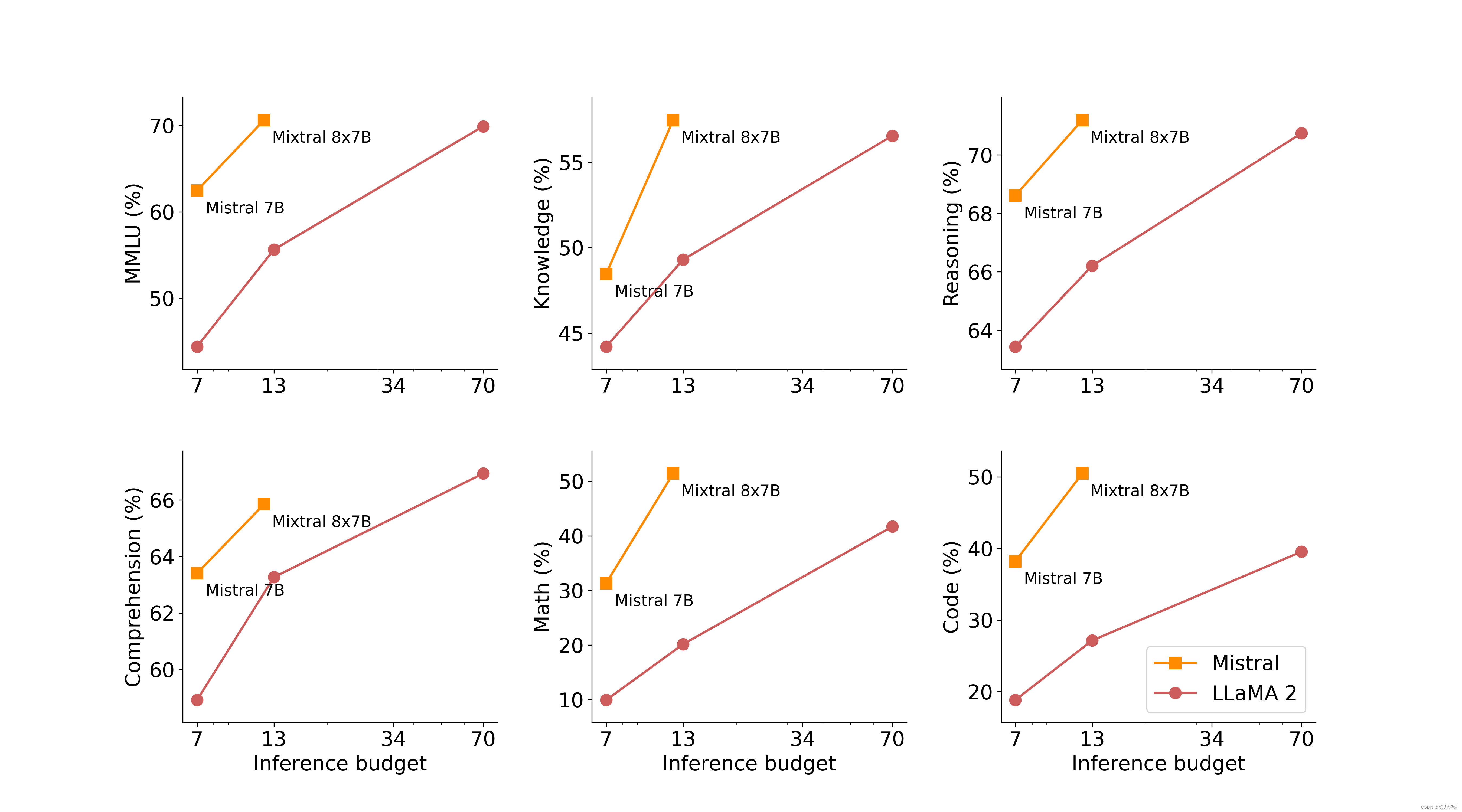 高效的推理性能: Mixtral 8x7B在推理速度上相较于Llama 2 70B有显著提升,达到6倍快的推理速度。这意味着在相同的硬件条件下,Mixtral能更快地处理和生成响应,这对于实时应用来说极为重要。