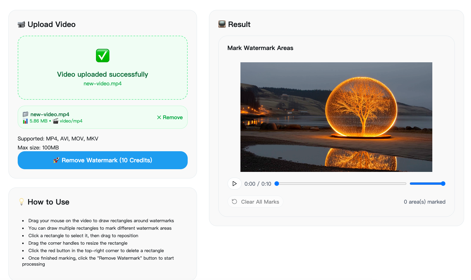 当你对标记的区域感到满意后,就可以点击那个显眼的“去除水印”按钮了。