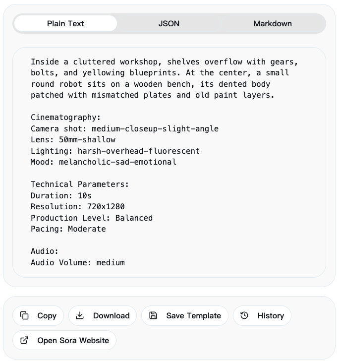 如果你刚开始用 Sora,不知道怎么写提示词,这个工具可以帮你快速上手。