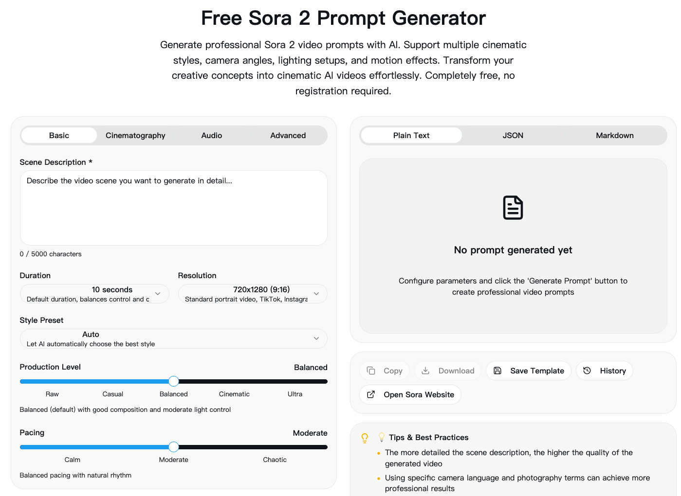 后来我在网上找到了一个工具:Sora Prompt Generator。
