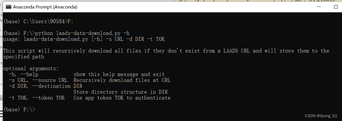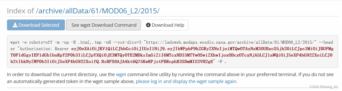 python laads-data-download.py -s https://ladsweb.modaps.eosdis.nasa.gov/archive/allData/61/MOD06_L2/2015/ -d F:\MOD06_L2 -t 你的token