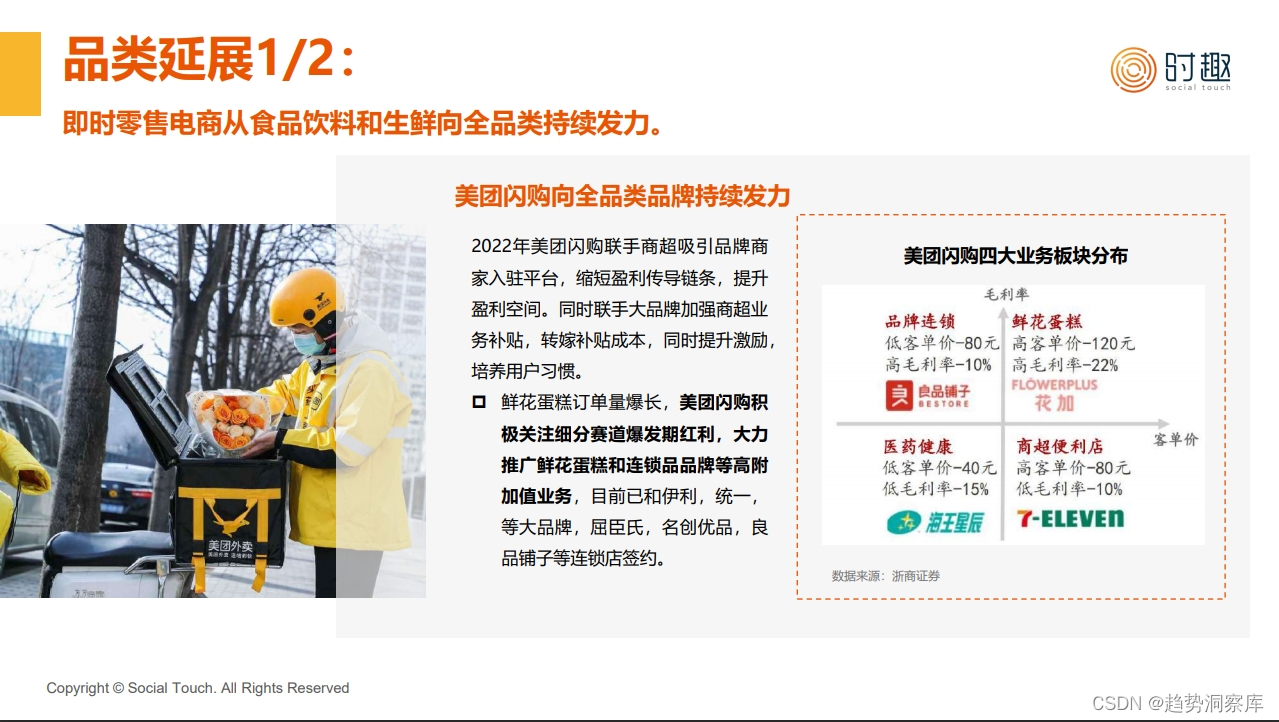 - 品类延展:即时零售电商从食品饮料和生鲜向全品类持续发力,社交电商向小众领域品牌商家拓展。