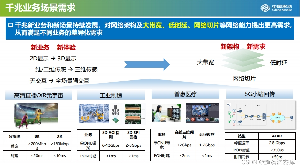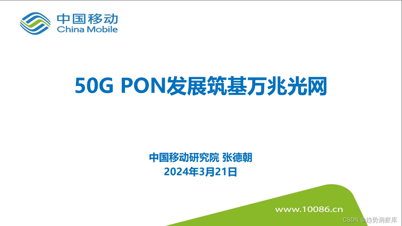 - 现网示范:中国移动在江苏移动南京现网成功完成了全球首个对称50G PON固移接入应用示范,验证了关键技术方案的有效性。