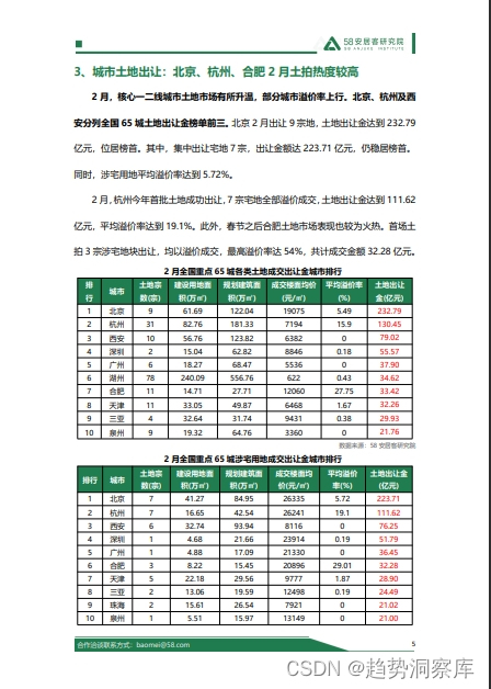 - 北京、杭州和西安在2月份的土地出让金排名前列。