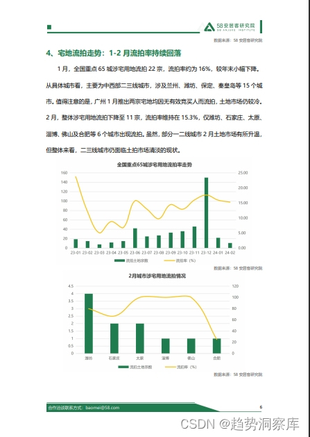 - 1月份,全国重点65个城市涉宅用地流拍22宗,流拍率约为16%。