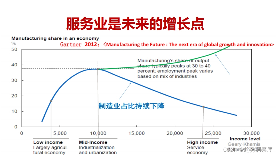 报告指出,服务业是未来的增长点,但同时也面临着一些挑战,如医疗服务需要24小时服务和设备MRO(维护、维修和操作)行业面临的设备数据所有权问题。
