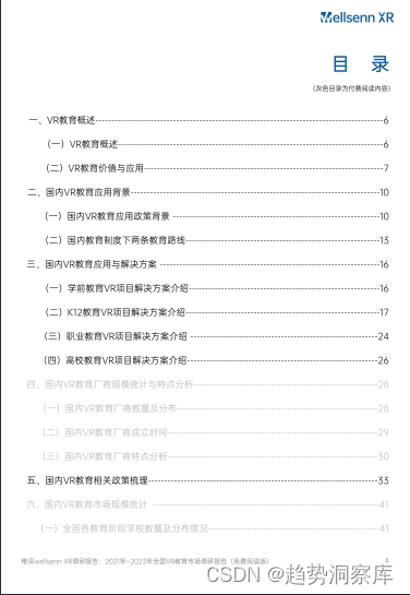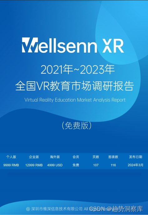本文分析了2021-2023年中国VR教育市场的增长、回落趋势,包括市场规模、厂商分布、政策支持、应用领域和产业挑战。报告详细研究了市场规模和地区分布,并通过厂商案例探讨了行业现状与未来发展趋势。