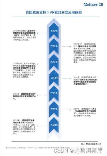 - 国家政策自2012年以来一直鼓励VR教育的发展,近三年相关政策发布频率增加。