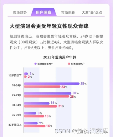 - 年轻女性观众是大型演唱会的主要群体,占比超过60%。